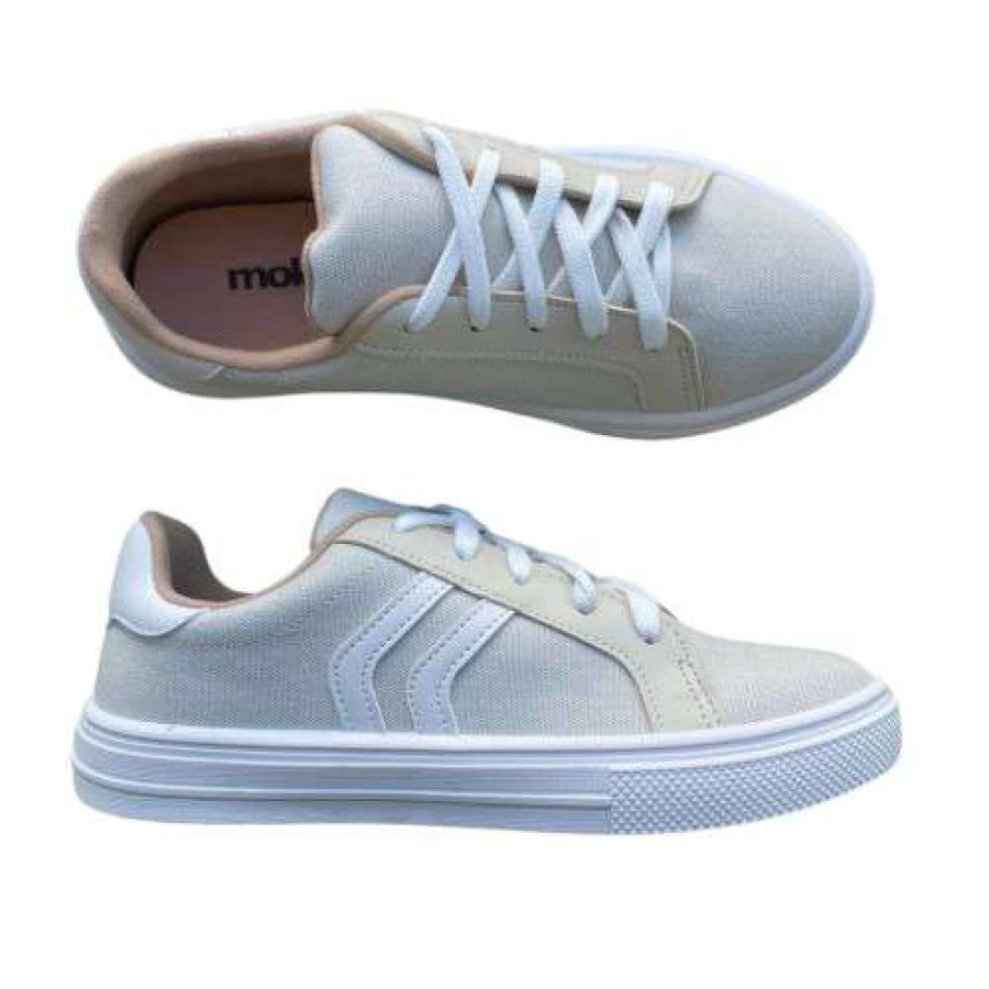 Tênis Moleca 5796.106 Off White com Listras Laterais – Leveza, Estilo e Conforto